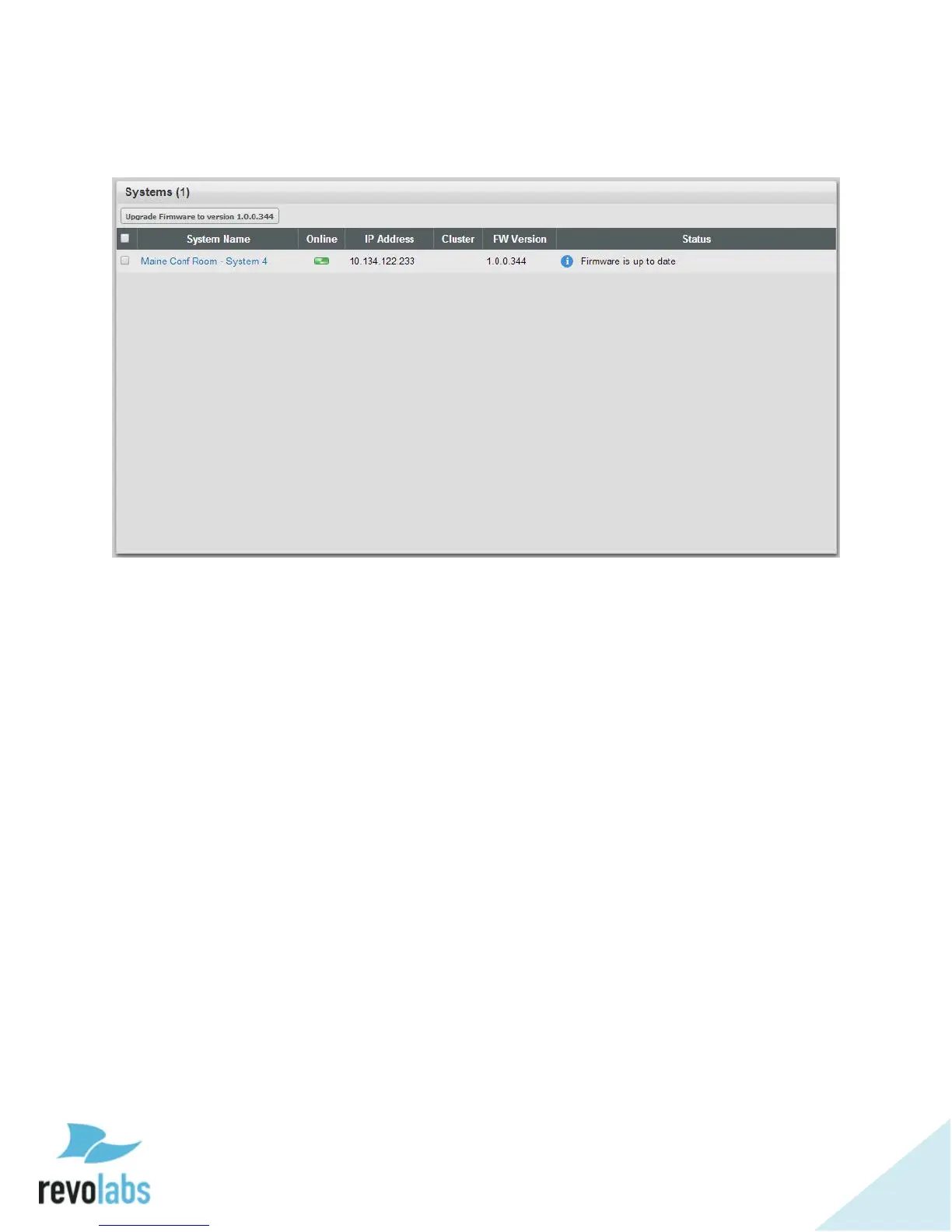 the revoCloud server will report if the current firmware version on each base is