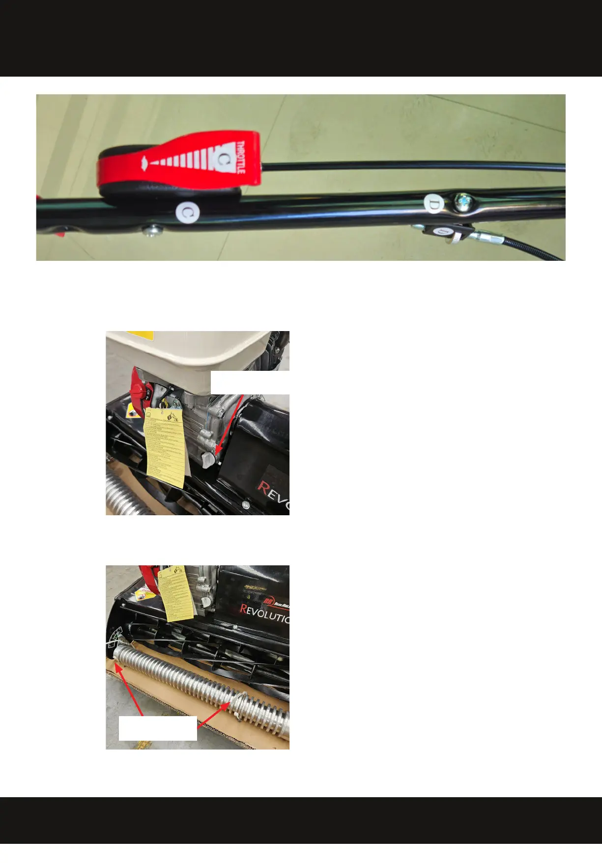 4. Using the screws supplied, losen the tape and fasten the throttle lever “C” and cable thunb wheel