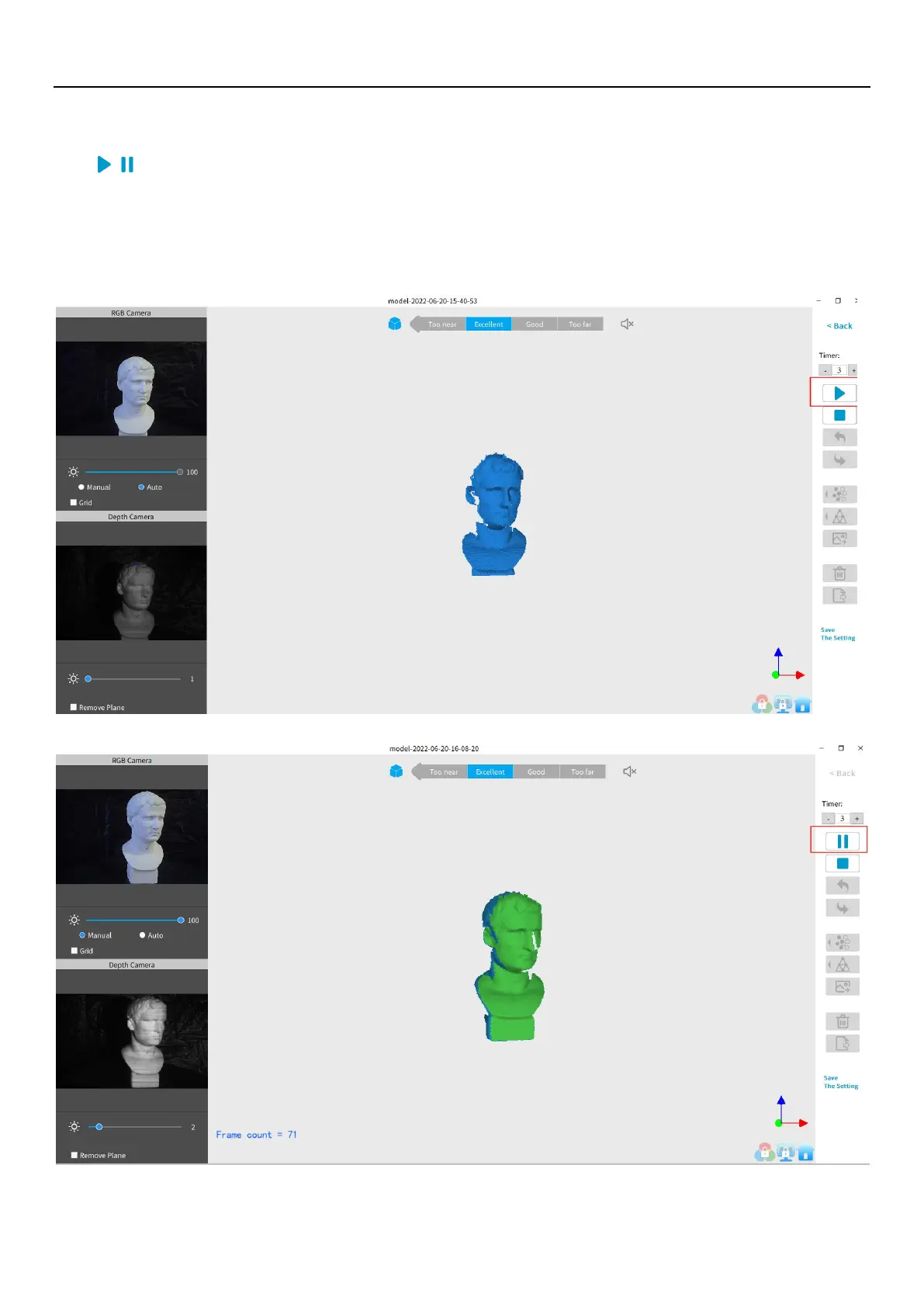 During scanning, please make sure the point cloud in the lower-left window is adequate and the distance remains