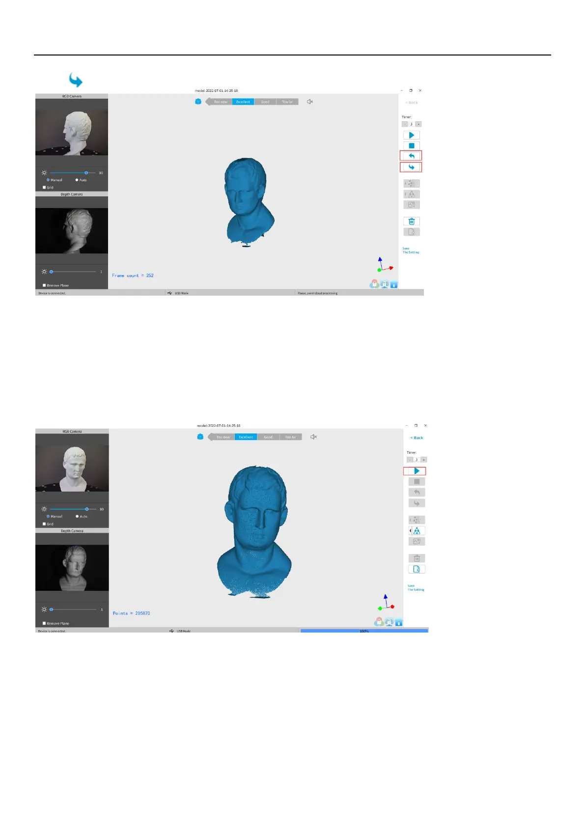 controller (a computer or smartphone) runs out of RAM to capture more frames or if holes in the scan data are discovered.