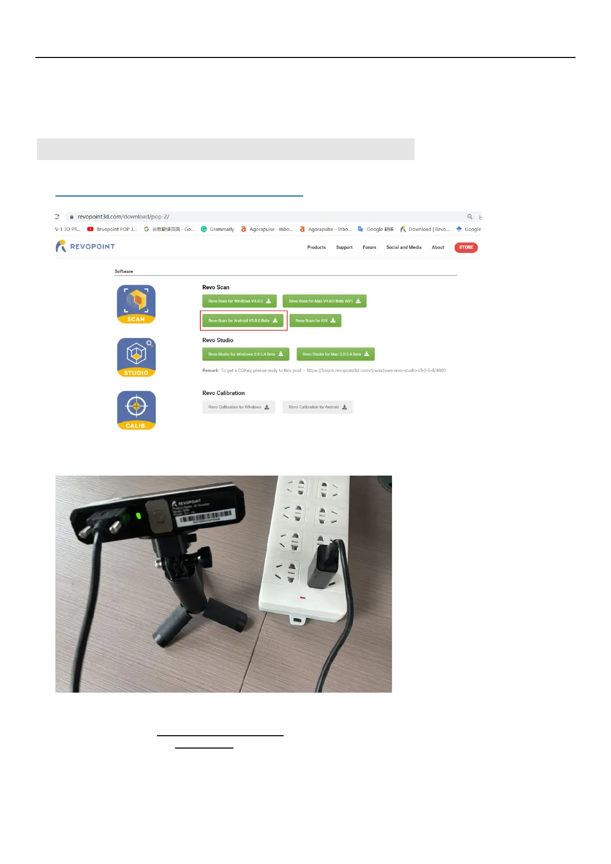 2. Power the MINI 3D scanner on with a power bank or other power supply;