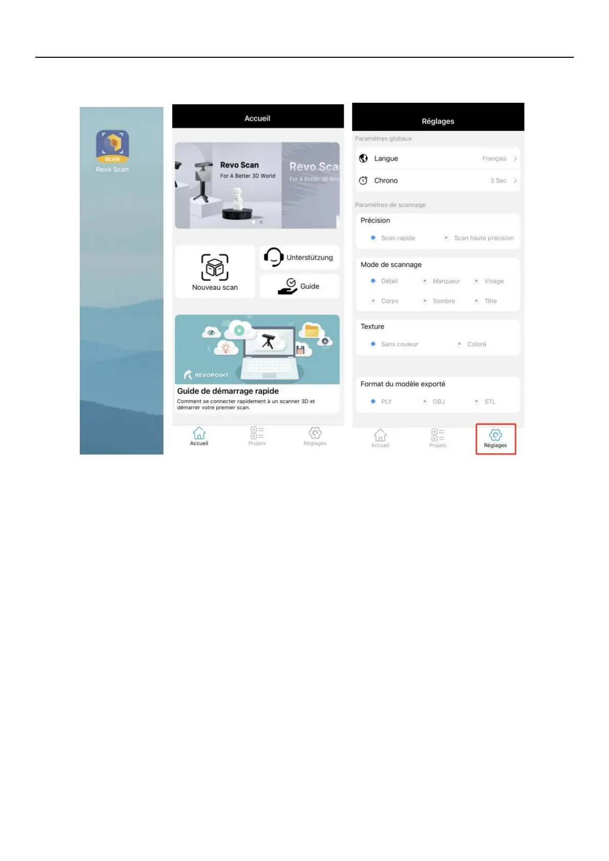 Before scanning, select proper Accuracy, Scan Mode, Texture and Model Format according to your scan demand.