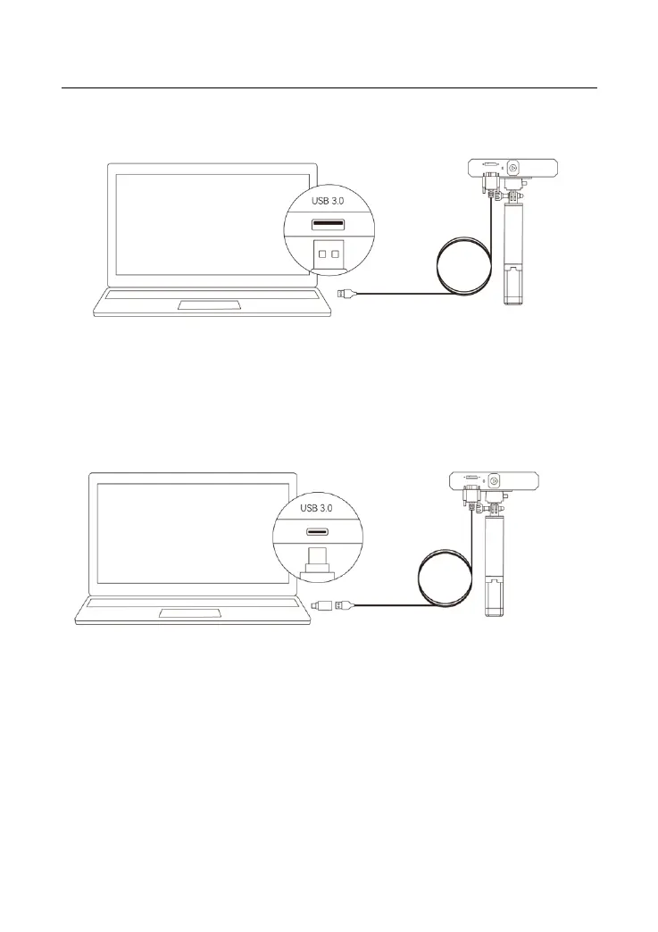 2) If there is no Type-A port on your laptop, use the Type-A-to-C adapter.