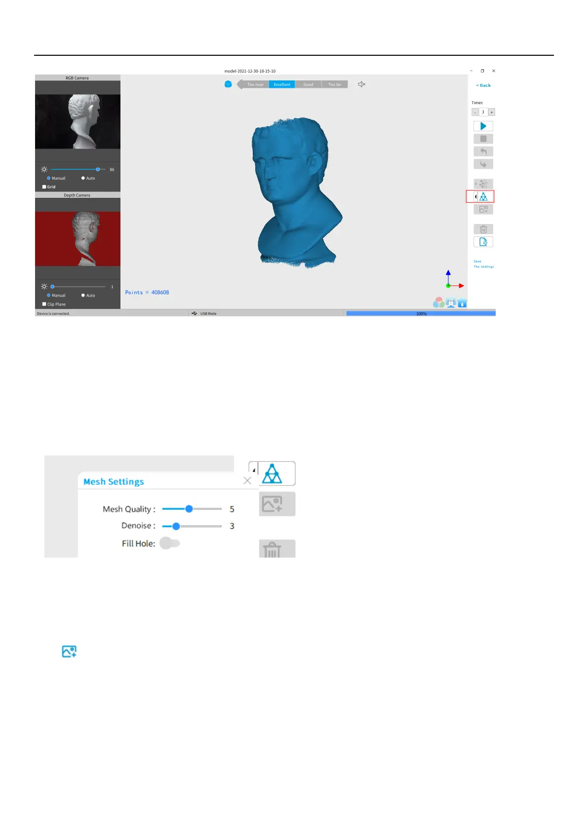 The Texture function only applies to scans made with the "Colorful" option selected (see New Scan options on p. 9).