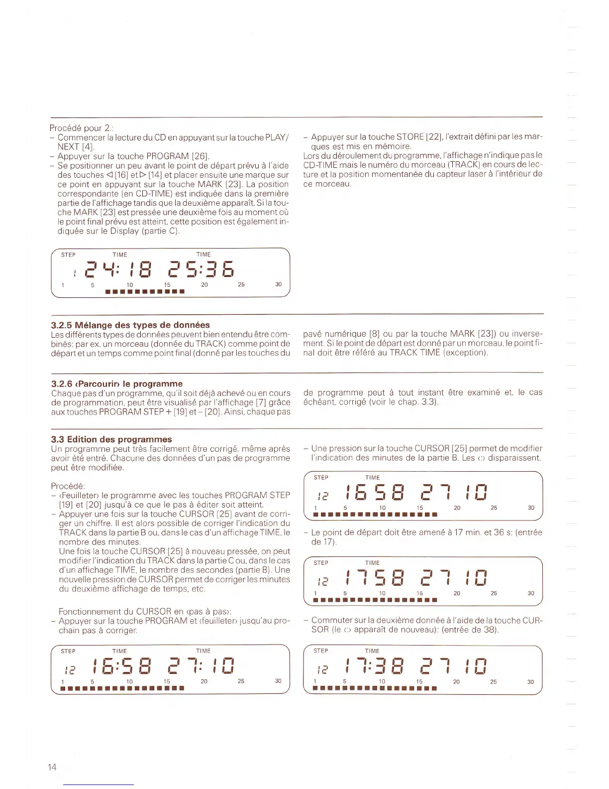 du deuxiöme affichage de temps, etc.