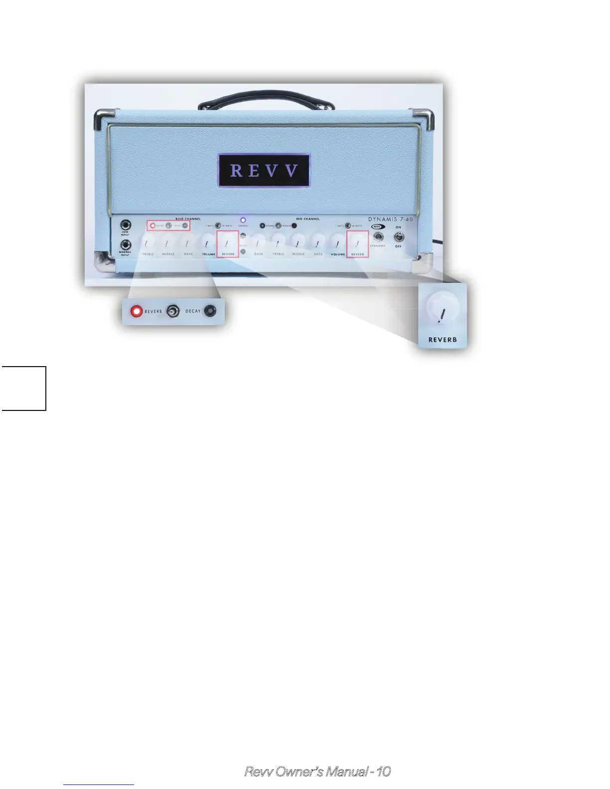 Upon startup, reverb is engaged with a short decay. To turn reverb on or