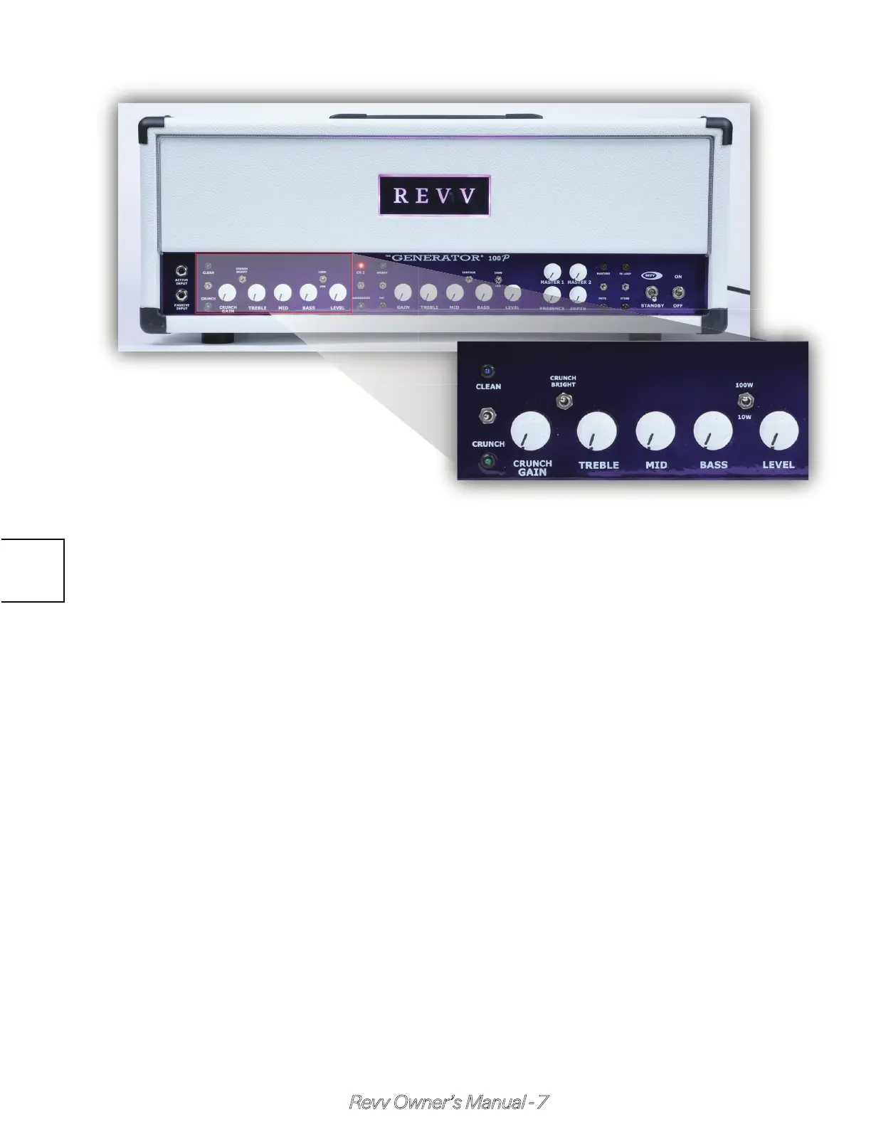 Level (volume) controls both Clean & Crunch volume for well-balanced