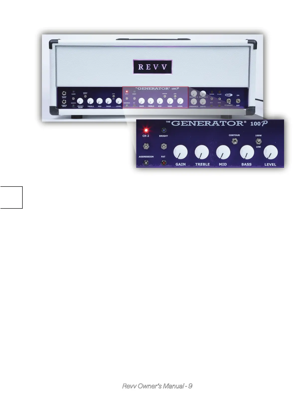 Gain, treble, mid, bass & level (volume) control knobs with a wide range