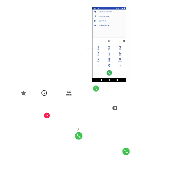 To dial an international call, touch and hold to enter “+”, then enter the international country prefix