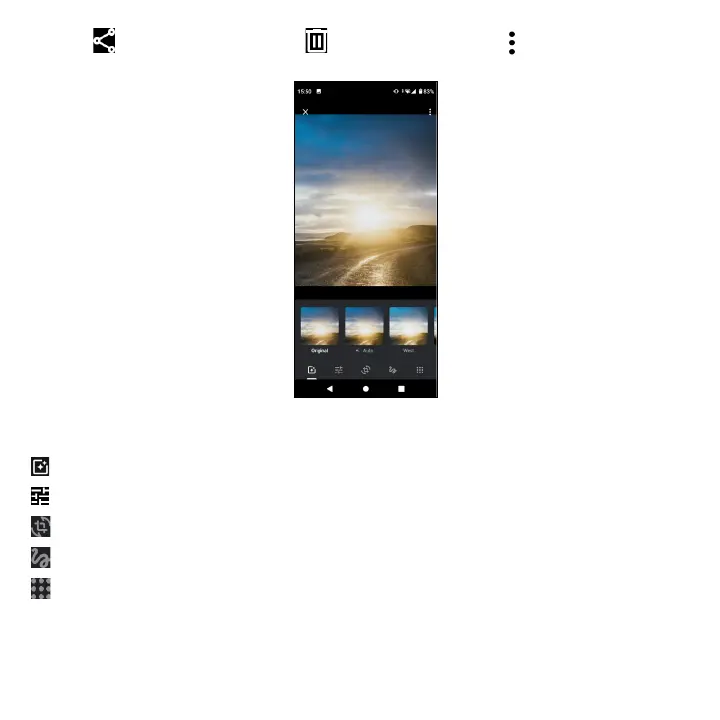 • Touch to share the picture, or touch to delete the picture. Touch and select Use as to set the