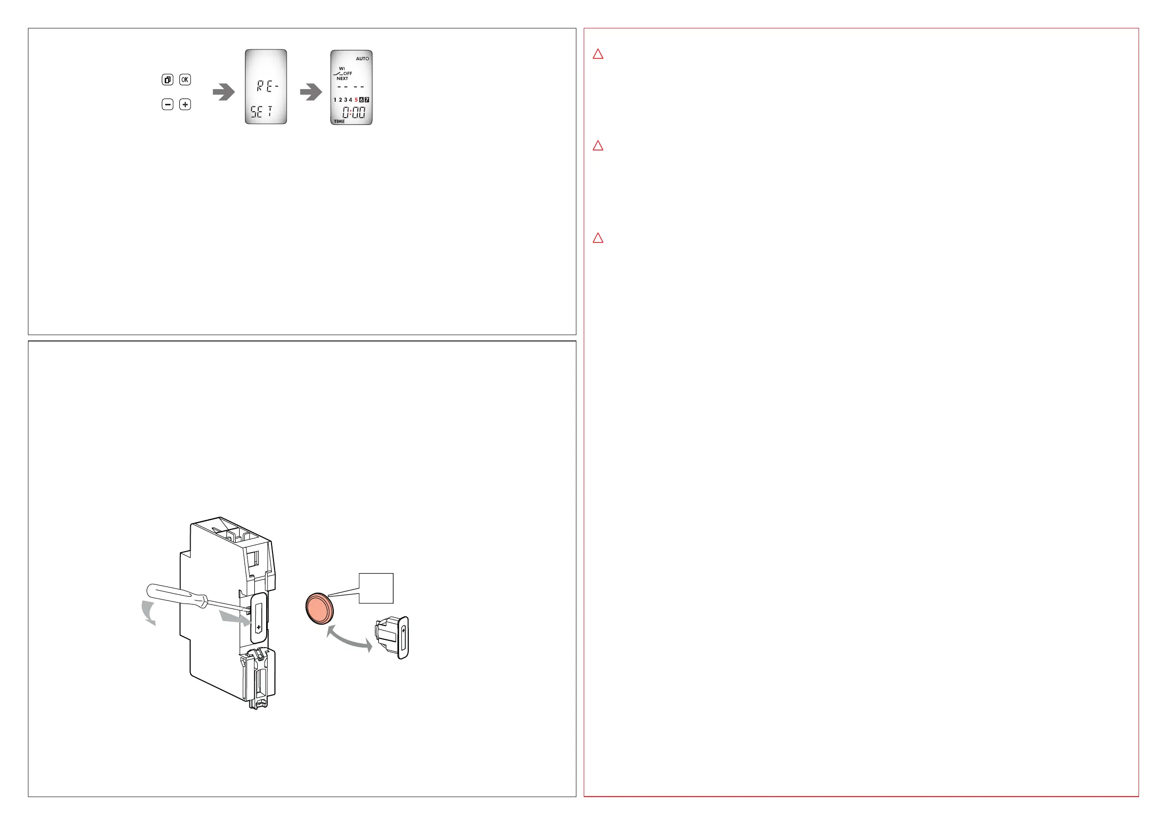 2 seconds, then release them. The time, date, summertime/wintertime and switching times will have to be re-entered.
