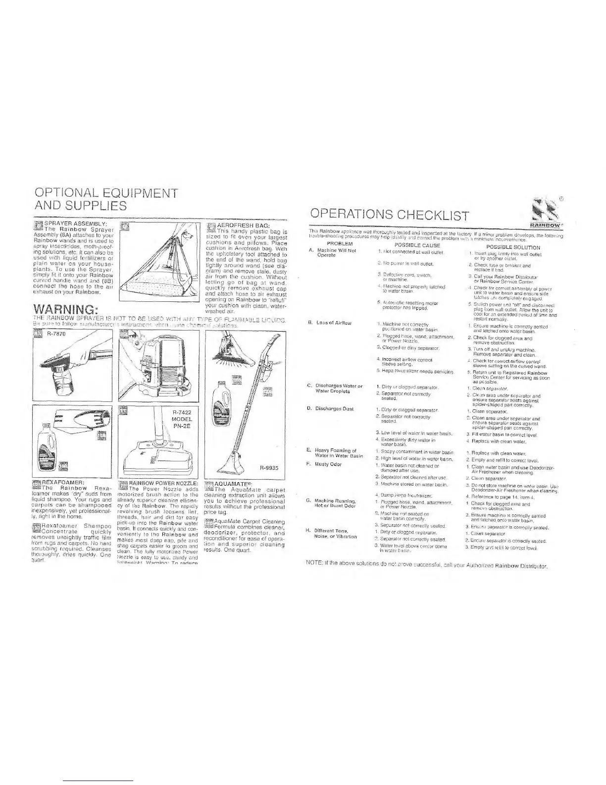 Rexair Rainbow E Series - Optional Equipment and Supplies; Sprayer Assembly; Rexafoamer; Rainbow Power Nozzle