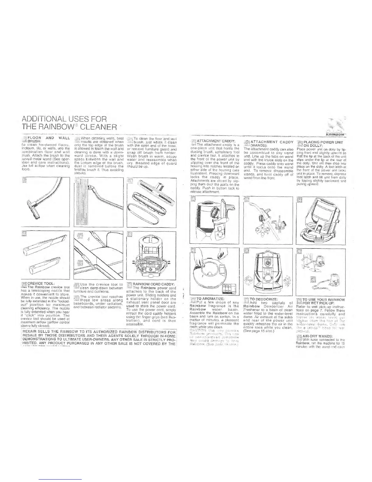 Rexair Rainbow E Series - Additional Uses for the Rainbow Cleaner; Floor and Wall Brush; Crevice Tool; Rainbow Cord Caddy