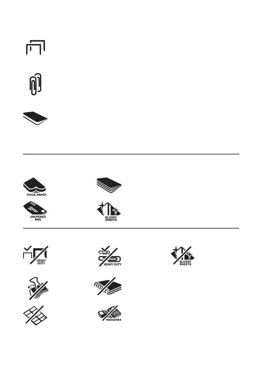 • Gemkapoccsal összefogott papír, max. 25 mm-re a papír sarkától