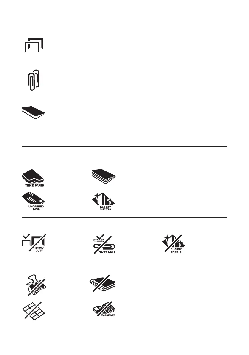 • Små/mellemstore (maks. ståltrådstykkelse = 0,9 mm) papirclips