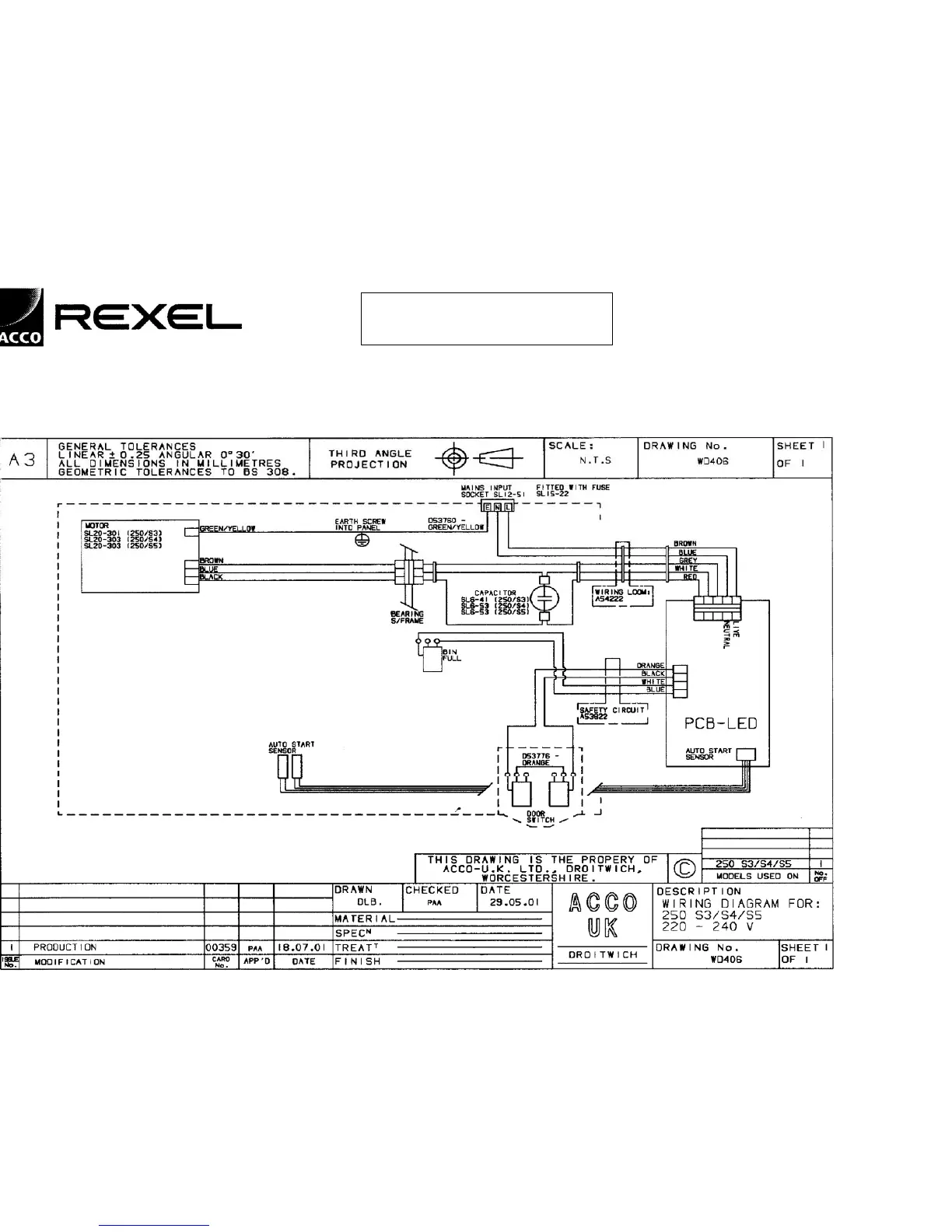 Rexel 250 S2 - Wiring Diagram: Model 250 S3;S4;S5
