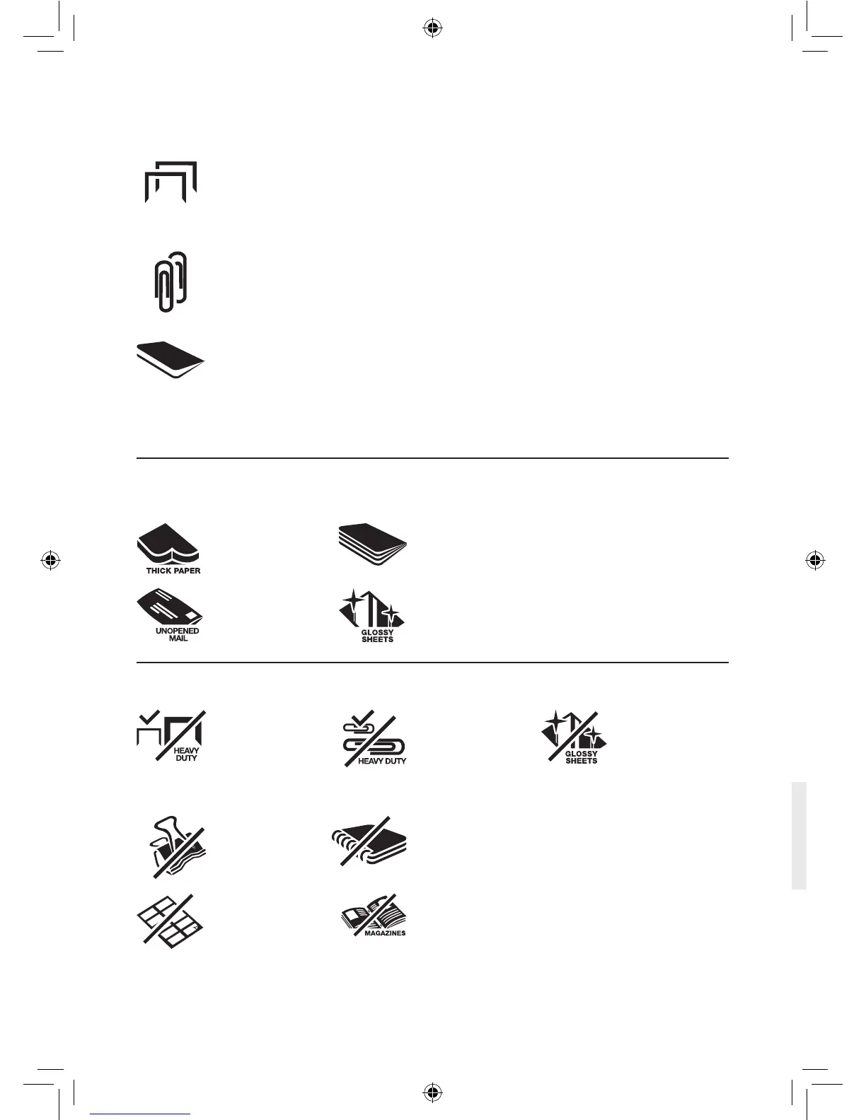 • Papier ze zszywkami, do 25 mm od rogu