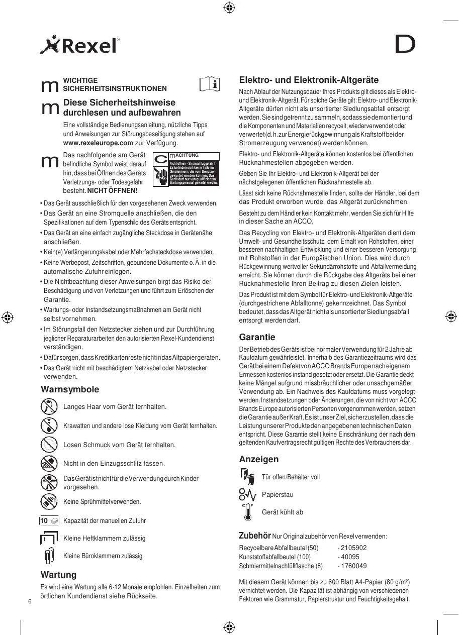 Nur Originalzubehör von Rexel verwenden: