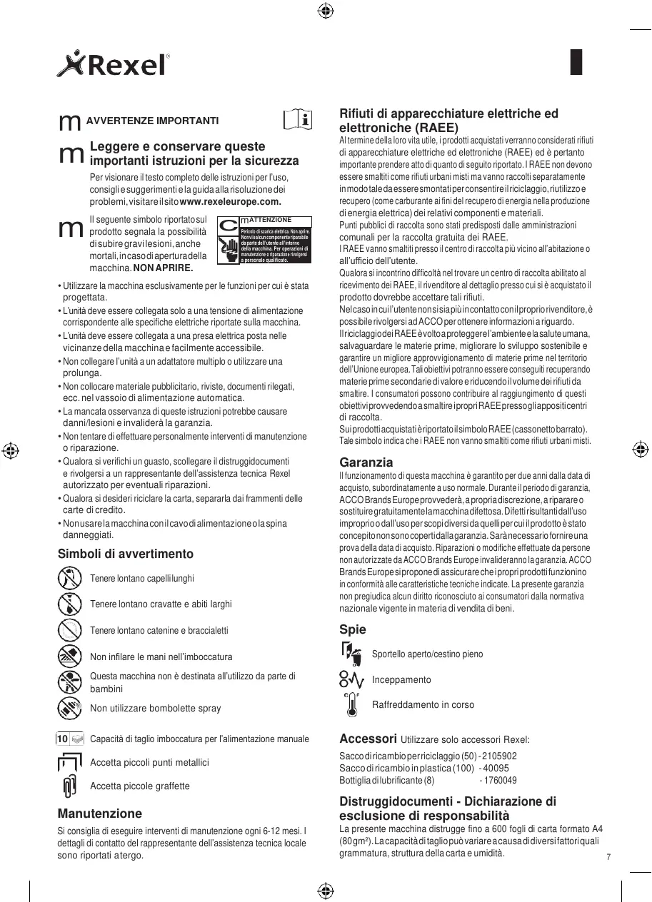 Utilizzare solo accessori Rexel: