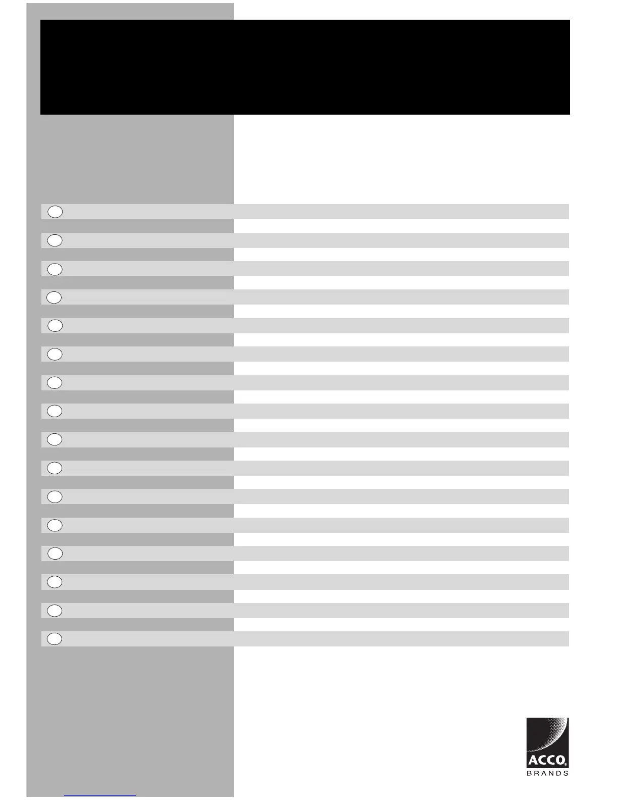 ACCO UK- Sales (International) Gatehouse Rd, Aylesbury, Buckinghamshire HP19 8DT U.K. Tel: 01296 397444 Fax: 01296 311000