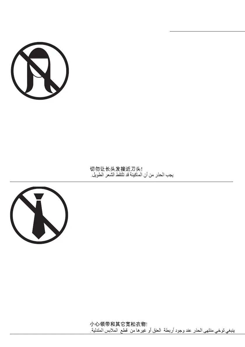 S Undvik långt hår i närheten av skärverket!