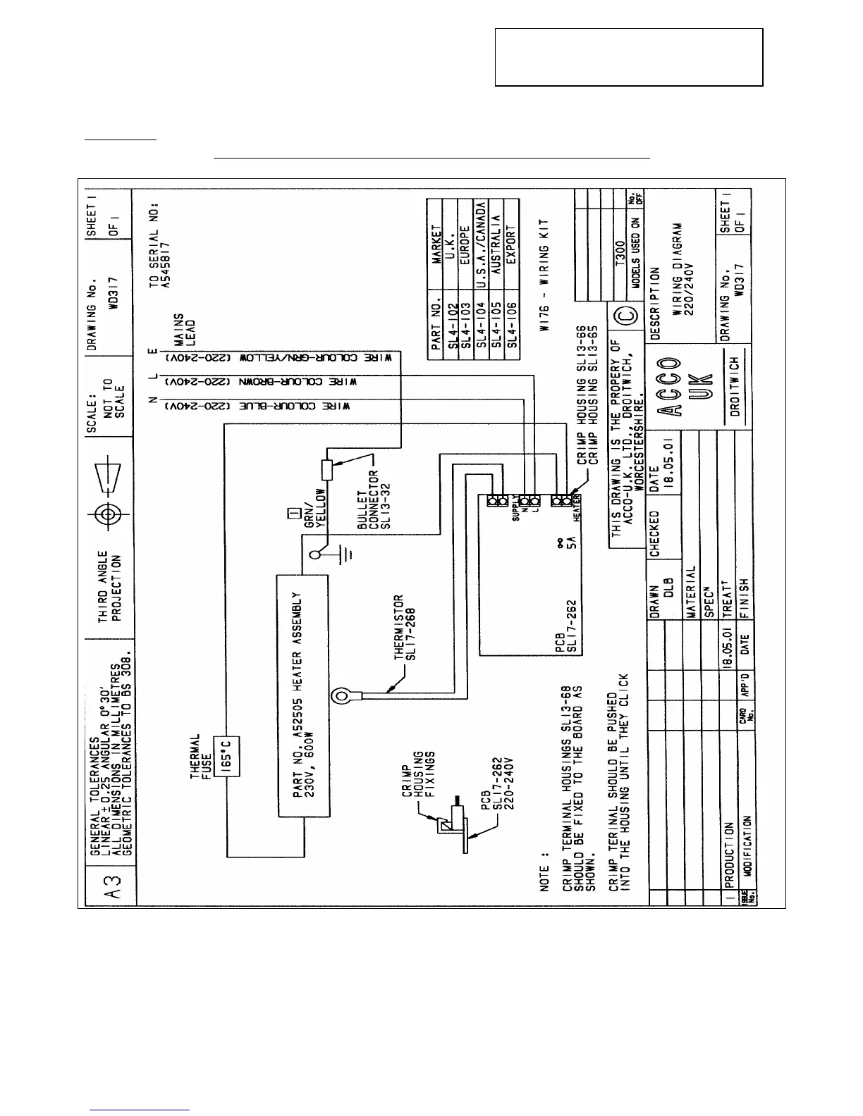 WIRING DIAGRAM 220/240V WD317 TO SERIAL NO A545817