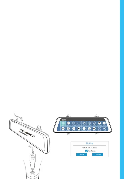 Power the camera by connecting the charger to the car