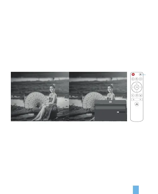 4. When playing film sources in side-by-side format, it requires pressing “3D” button