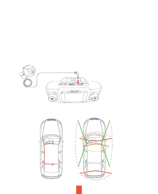 Mount the rear camera as shown below. Use rear camera cable to connect the rear
