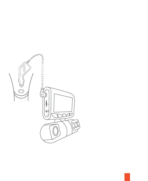 Alimenta la telecamera connettendo il caricabatterie all’accendisigari e alla