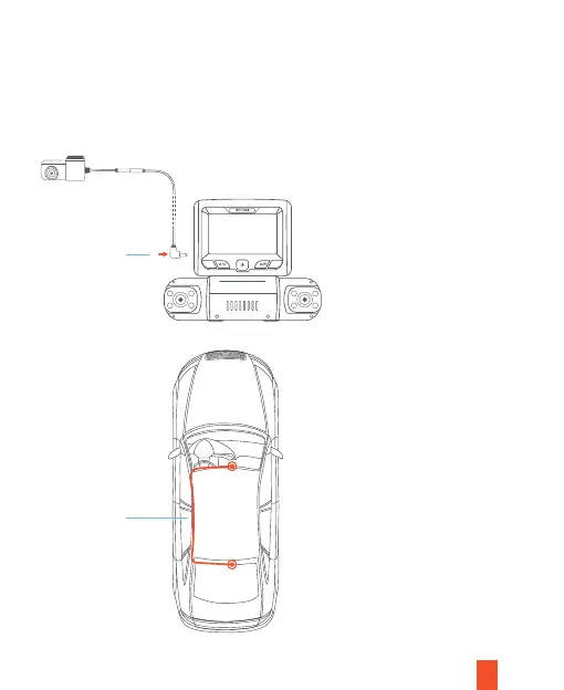 Mount the rear camera as shown below. Use the included rear camera cable to