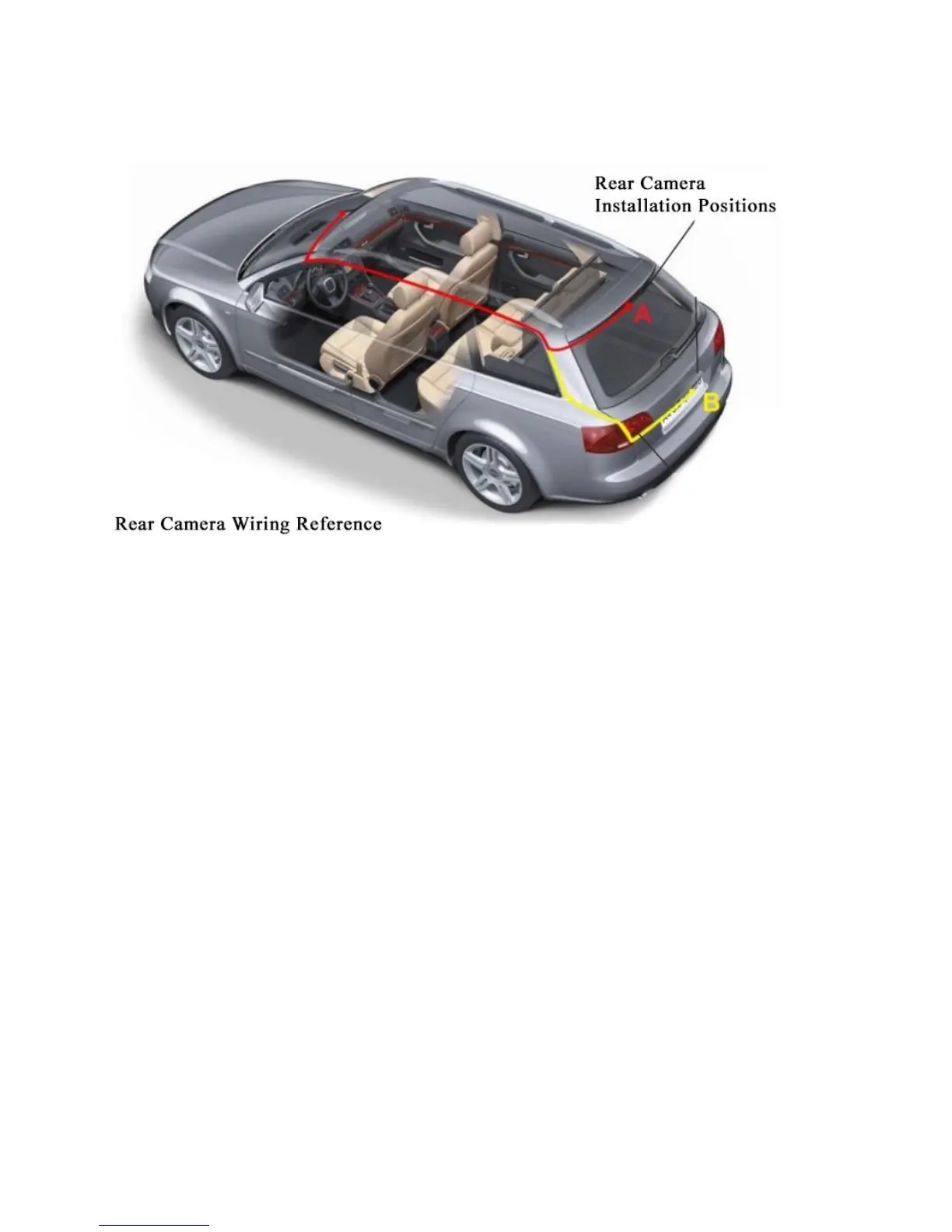 Mount the rear camera as shown above. Use the provided rear camera cable to