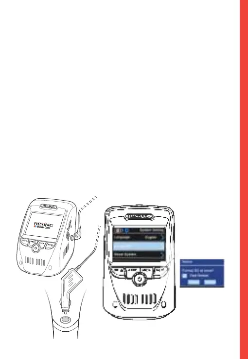 充電器を車のシガーライターとカメラに接続して、カメラの電源を
