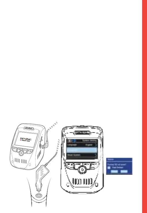Zigarettenanzünder des Autos und die Kamera anschließen.