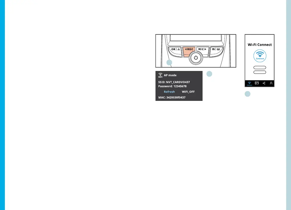 1. Dash cam: In Video Recording Mode, access the Wi-Fi