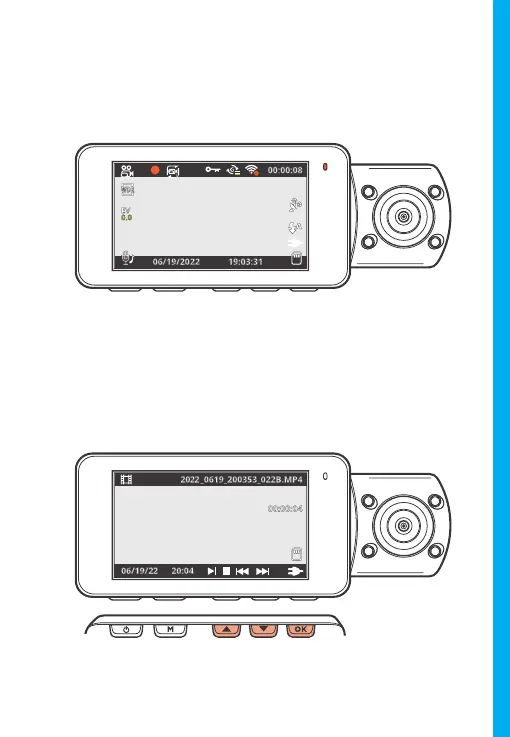 During playback, use the OK (pause), UP (rewind) and DOWN