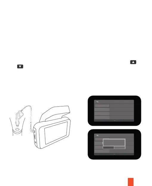 Power on the camera by connecting the charger to the car cigarette lighter and