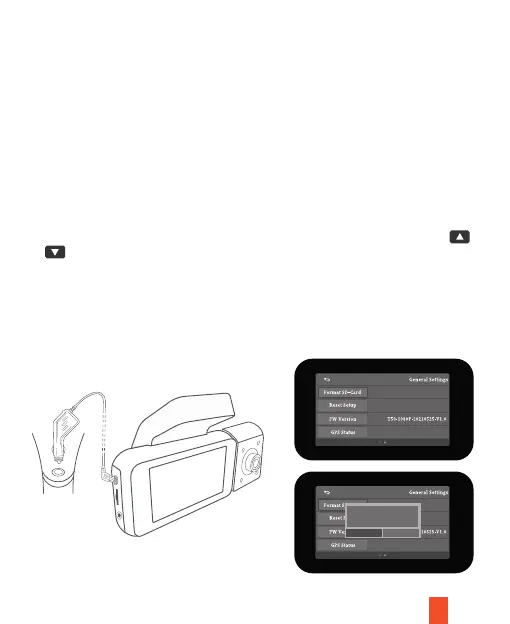 Alimentez la caméra en connectant le chargeur à l’allume-cigare de la voiture et à la