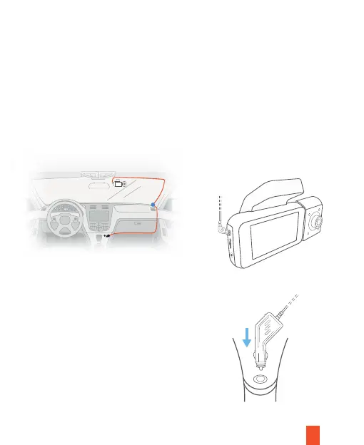 Acheminez le câble jusqu’à la Dash Cam Branchez le connecteur Mini USB