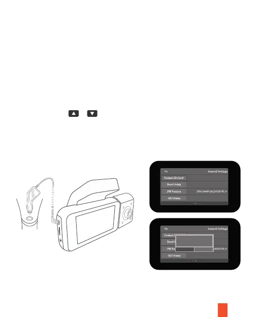 Alimentare la telecamera collegando il caricabatterie all’accendisigari dell’auto e alla