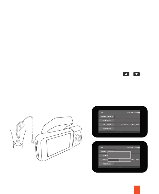 Encienda la cámara conectando el cargador al encendedor y la cámara del automóvil.