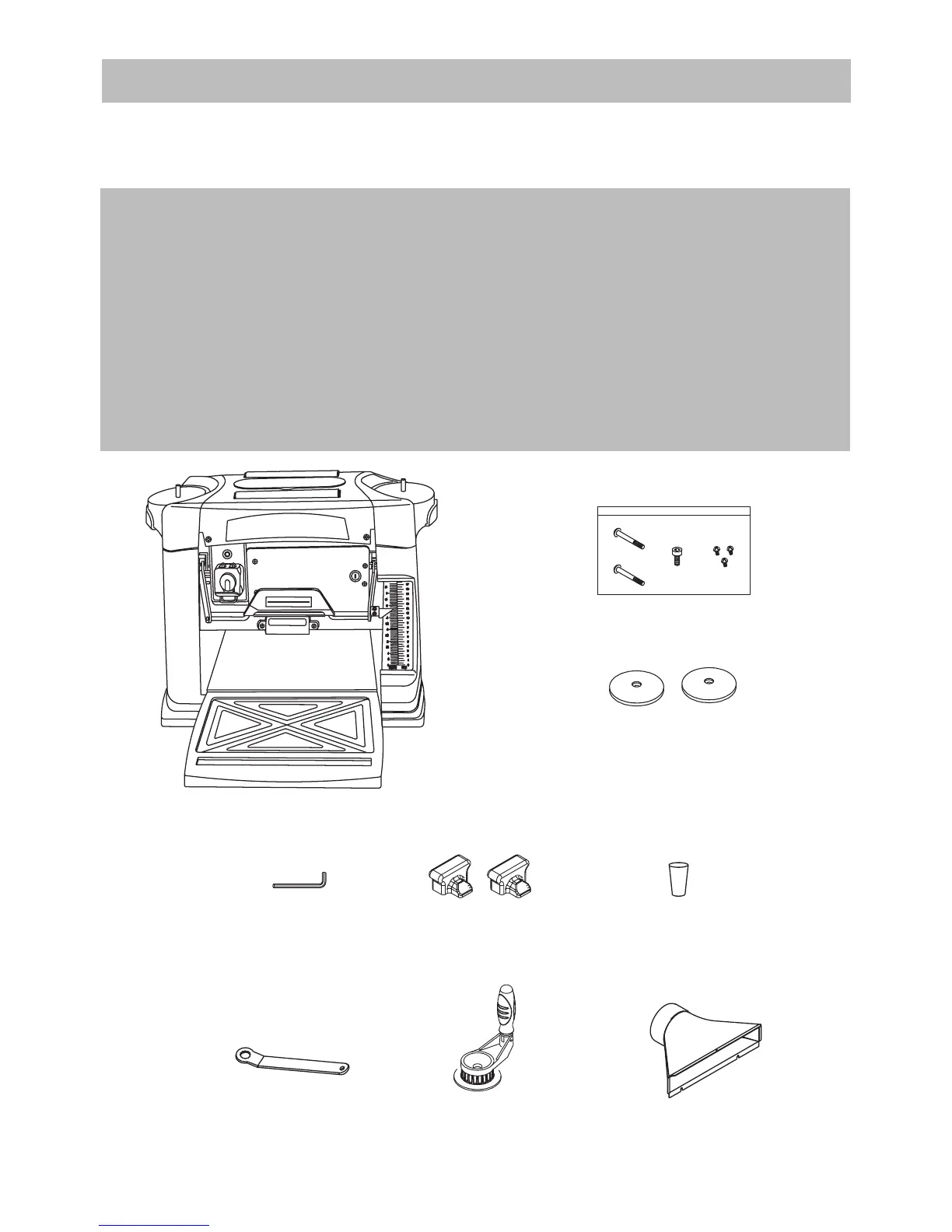 ● If any part is missing or damaged, do not attempt to assemble the thicknesser,