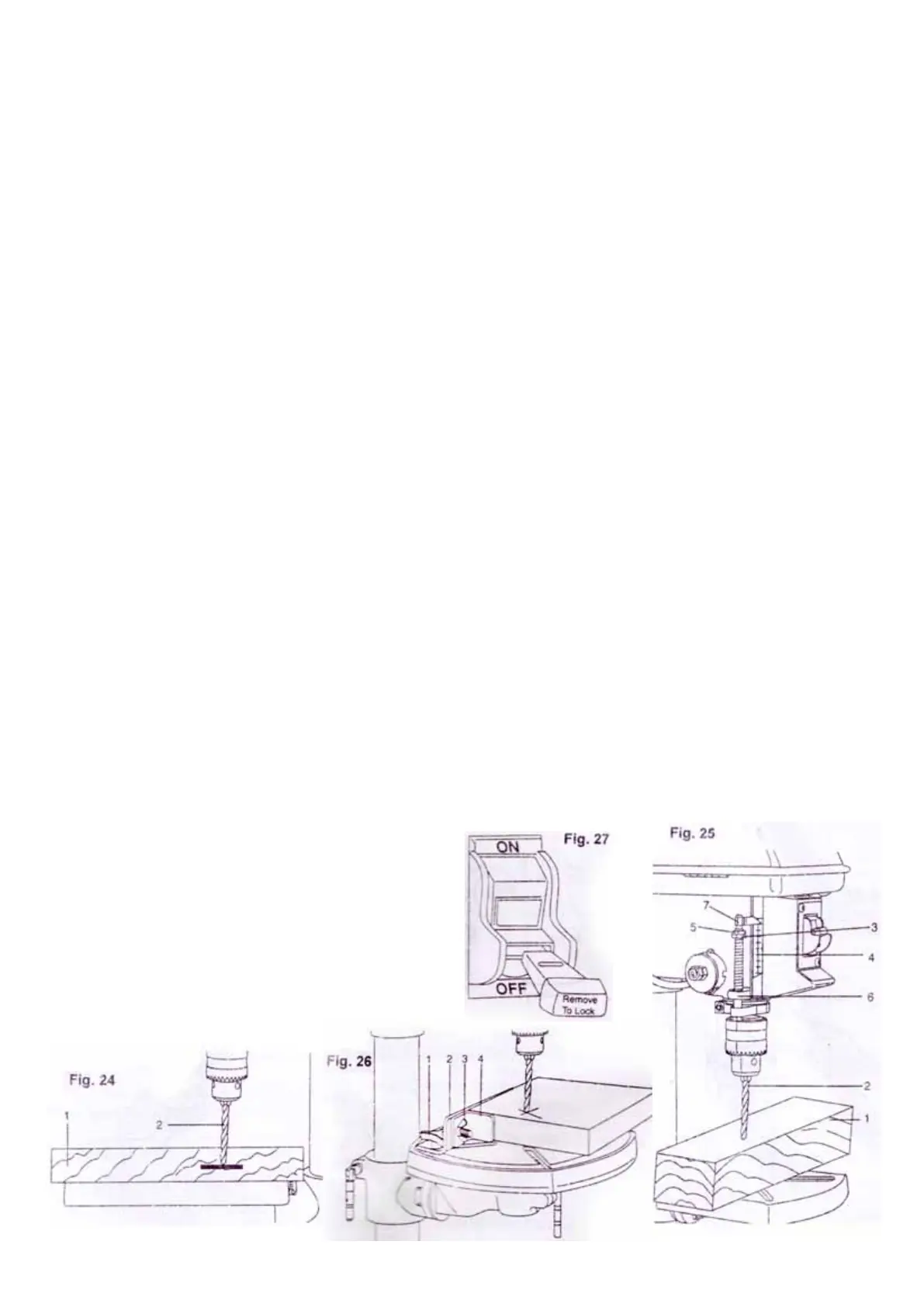 1. Turn off the drill press, turn feed handle until the depth