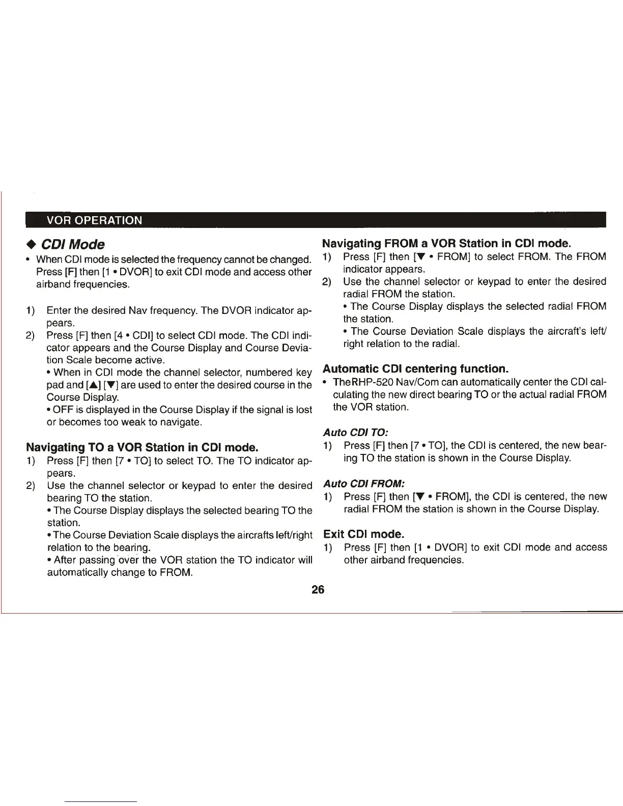 REXON RHP-520 - CDI Mode; Navigating to a vor Station in CDI Mode; Navigating from a vor Station in CDI Mode