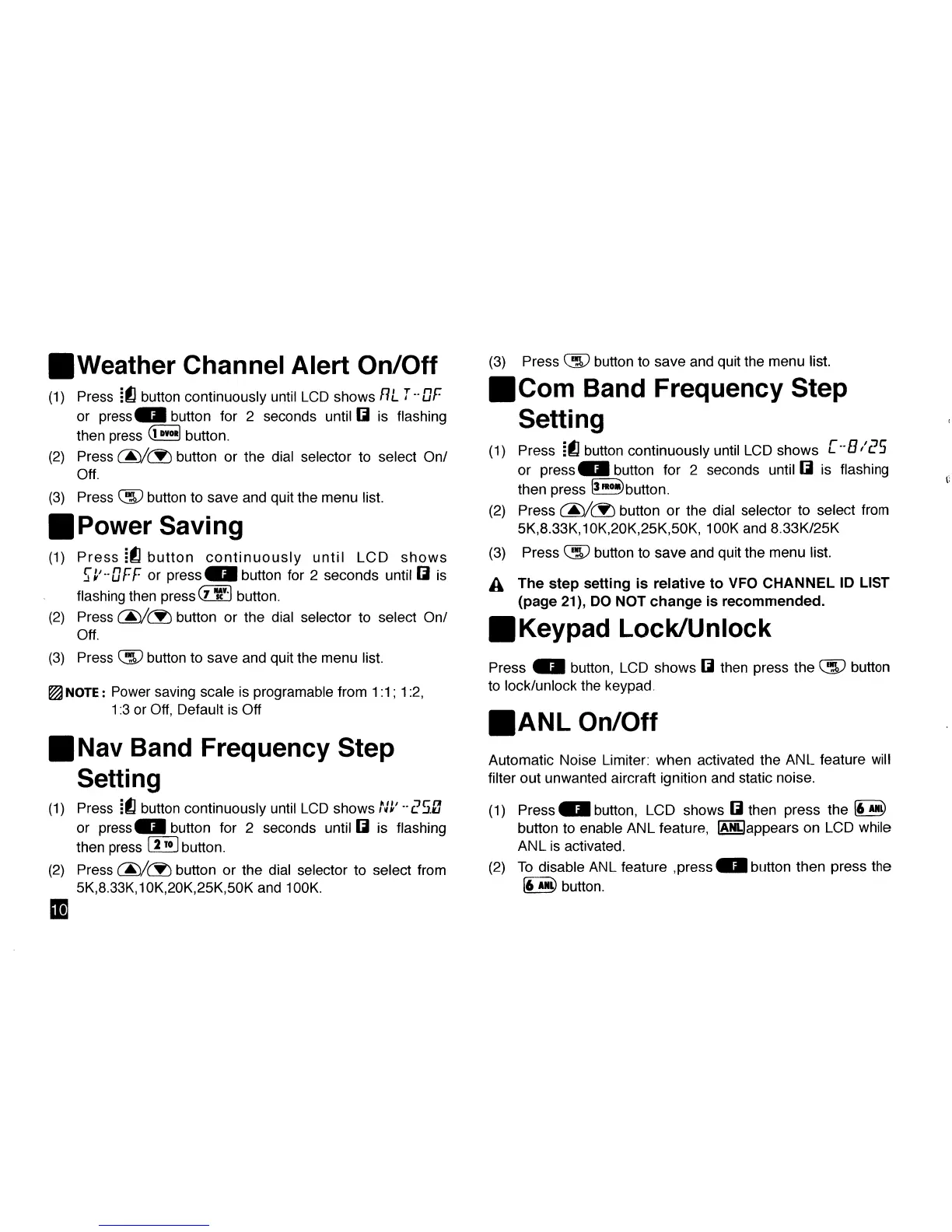 (2) To disable ANL feature .press •• button then press the