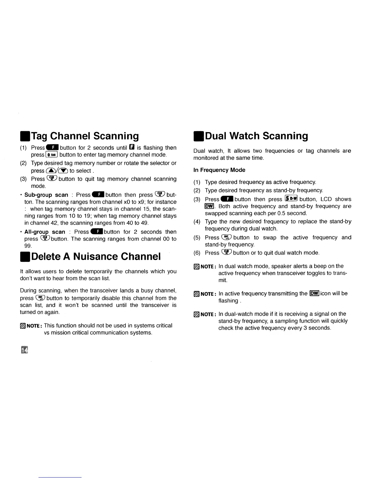 Dual watch, It allows two frequencies or tag channels are