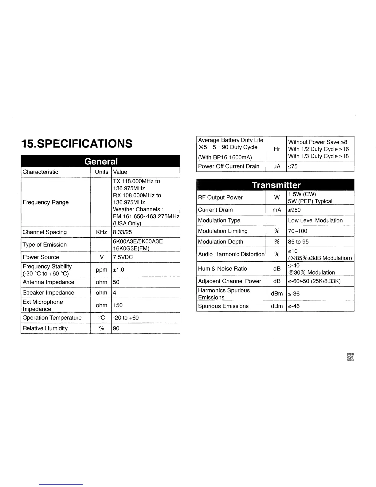 15.SPECIFICATI0NS