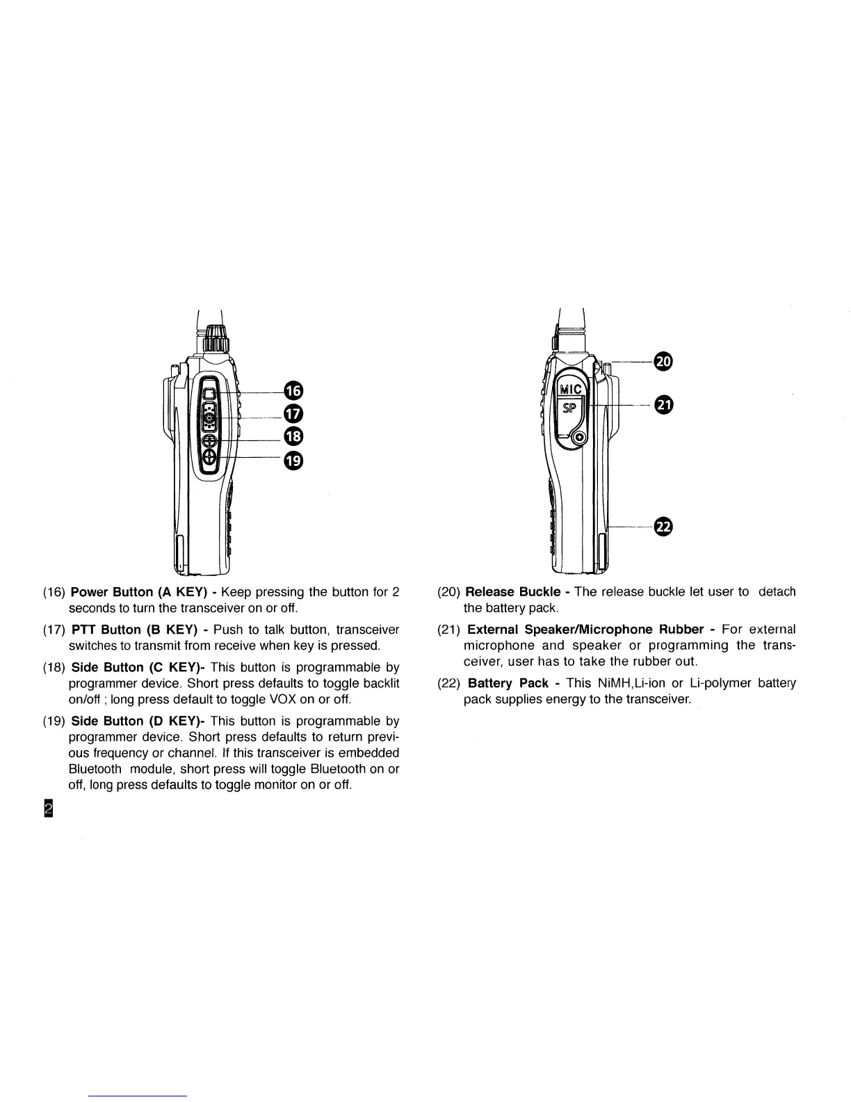 (17) PTT Button (B KEY) - Push to talk button, transceiver