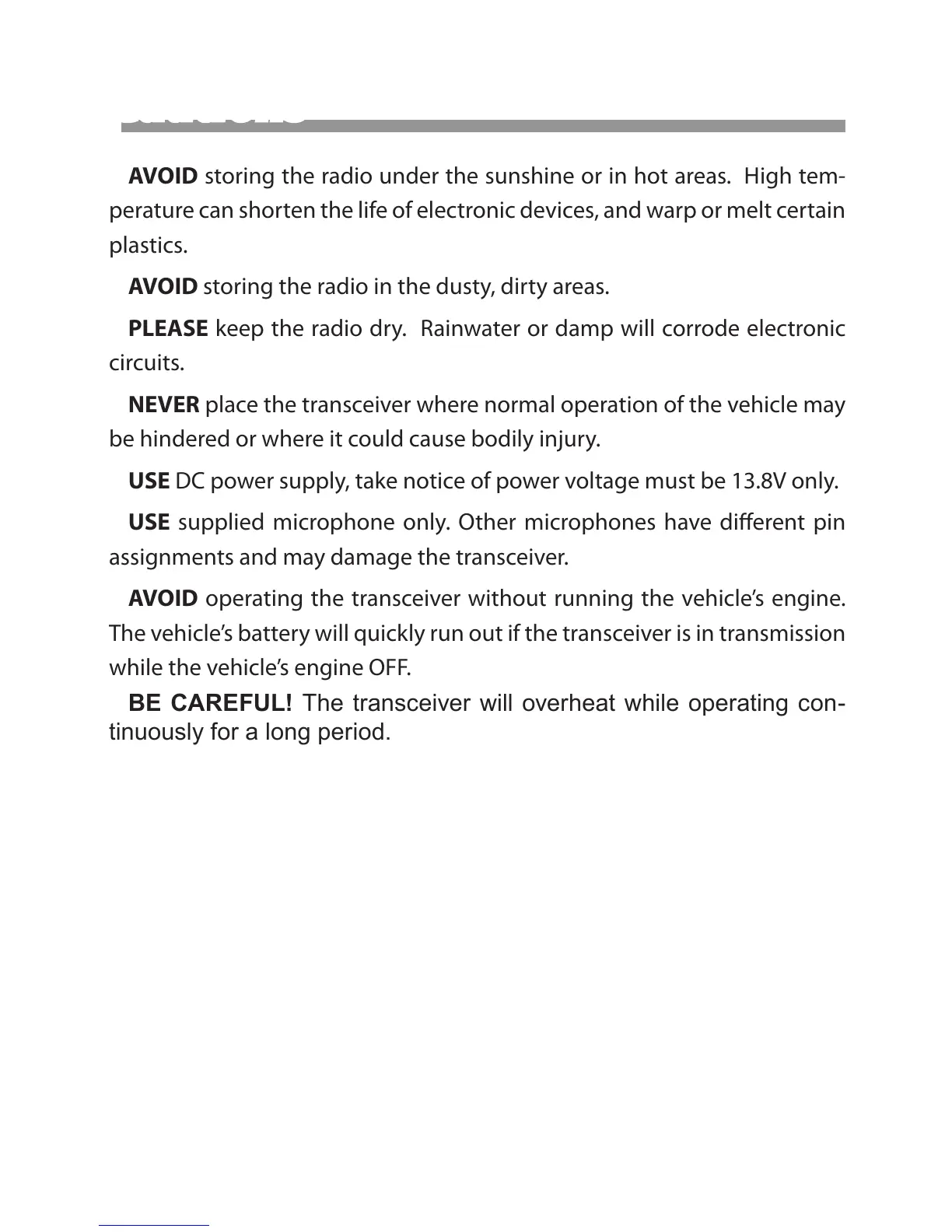 AVOID operating the transceiver without running the vehicle’s engine�