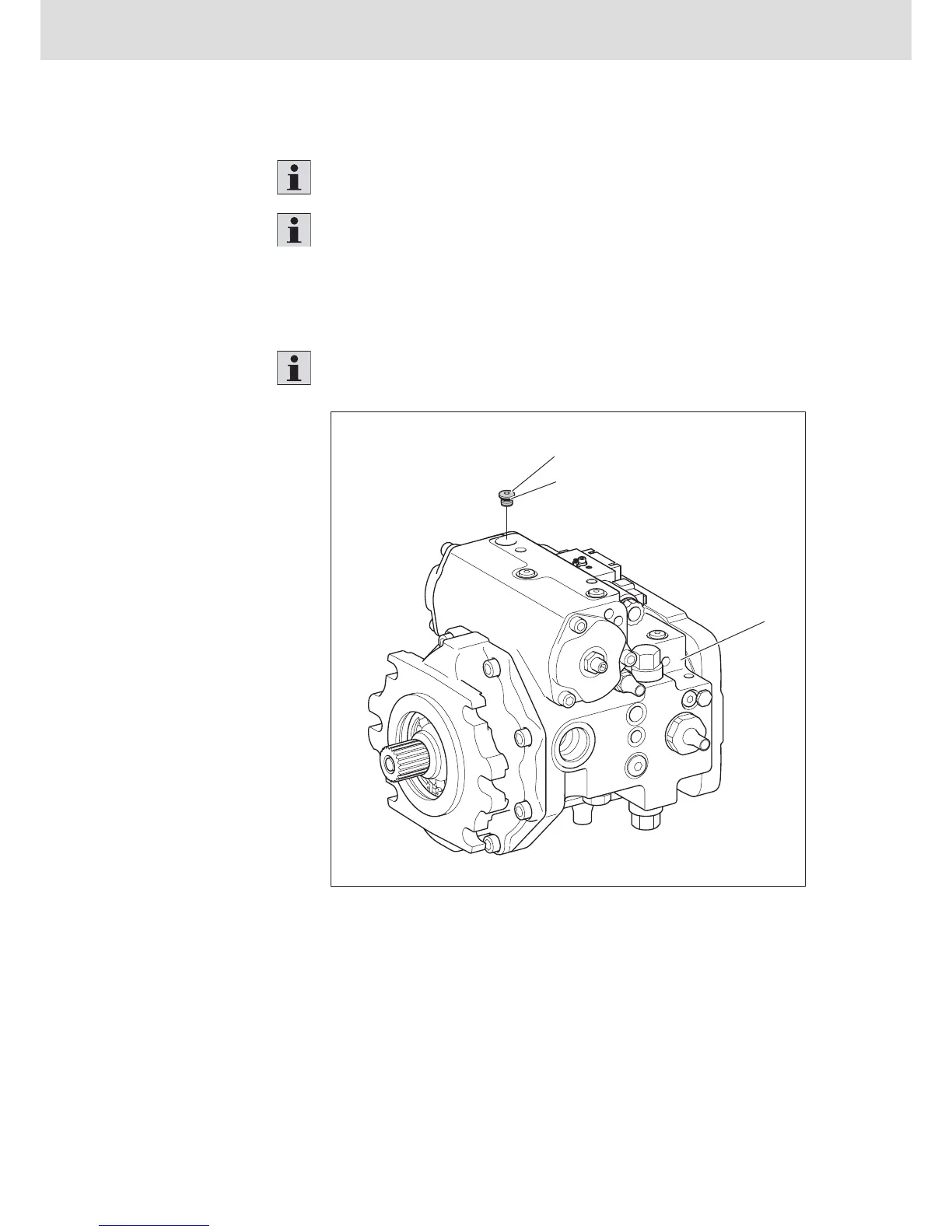 1. Loosen and remove the threaded plug (1) on the pump case (3).
